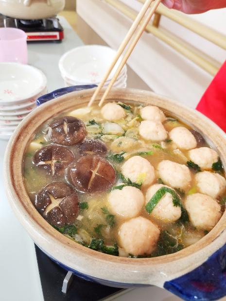 「さて、今日のお鍋はなに鍋かわかりますか? ヒントはいま私が入れようとしているのは『鮭』ということです」