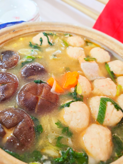 お鍋も完成し、さっそく盛り付けです。いろんな具がまんべんなく入るよう盛り付けます。