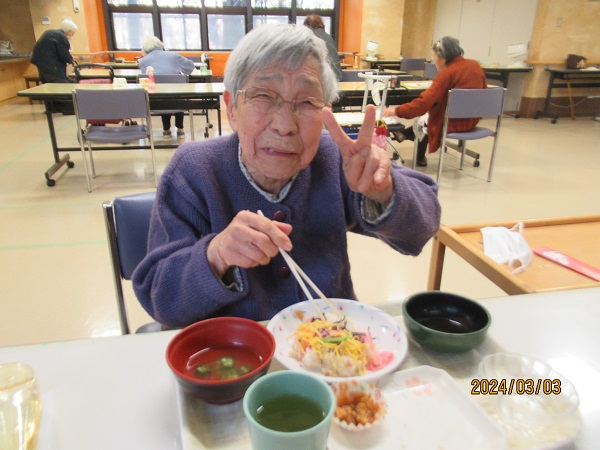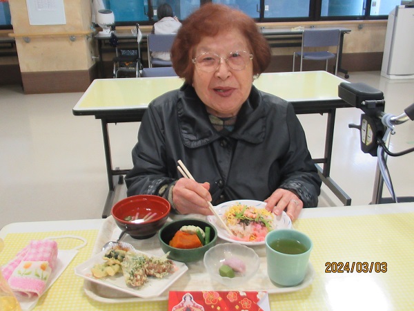 新着情報 NEWS お雛祭り| ケアハウス 辰巳彩風苑 2024.03.03 3月3日は、お雛祭りの日。 今日のランチメニューは、ちらし寿司と天ぷら、ミニ道明寺とうぐいすわらび餅。 彩も良く、とても美味しかったです。 美味しかったですね(⌒∇⌒) 皆さんもにこにこ(*´▽`*) 午後は記念撮影です。 今どきは珍しい七段のお雛様は、創設時にプレゼントされたもの。 それを背景に、入居者様にお姫様、お殿様に変身してもらいました。 なんだか、嬉しくなって笑顔が広がります。 三人娘も素敵です!!(o^―^o)ニコ また、来年、素敵なお姫様に変身しましょう。 一覧に戻る