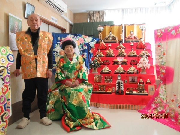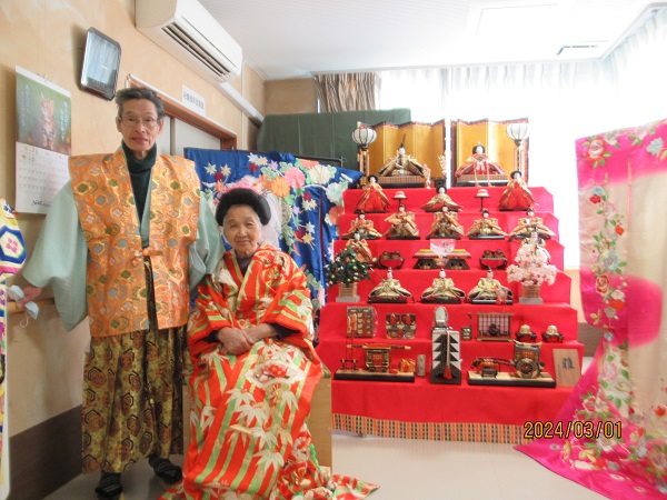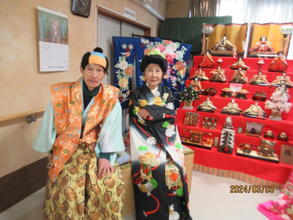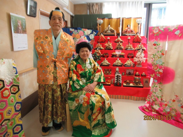 それを背景に、入居者様にお姫様、お殿様に変身してもらいました。