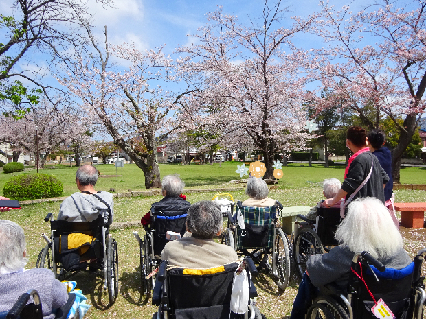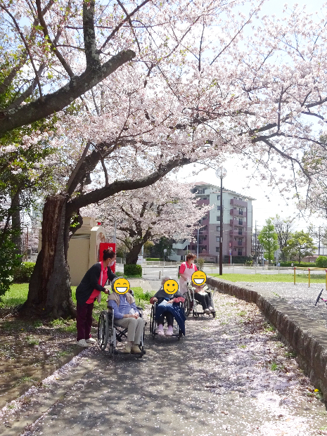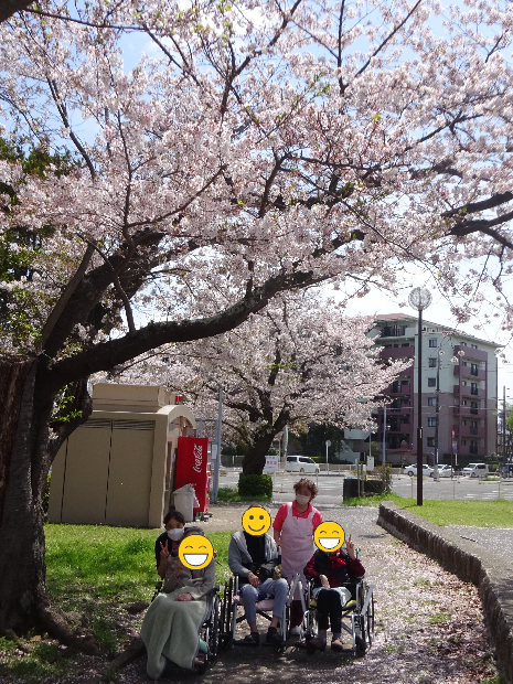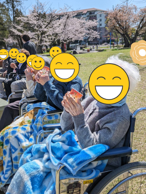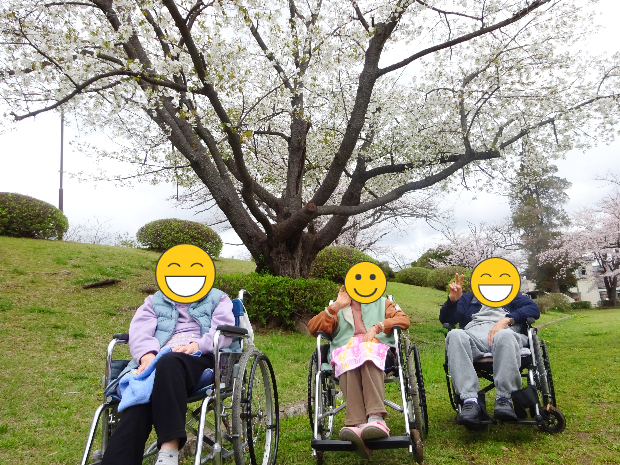 新着情報 NEWS 2024 お花見に行きました!| 介護老人保健施設 辰巳ナーシング・ヴィラ 2024.04.08 今年の桜は例年より開花時期が少し遅れていたようです。加えて天候も心配されておりましたが、4月某日より数日に分けてお花見に行ってまいりました! 行先は毎年お馴染みの辰巳中央公園。車ですぐのその場所にドライブしながら向かいます。 それではいってきま~す!!! ドライブすること数分・・・ 目的地に到着いたしました。車を降り、桜まで少し歩きます。日々のリハビリの成果を今こそ発揮! 春の空気を感じながら桜を目指します。 桜の木の木漏れ日はなんとも気持ちがいいですね。足元にも桜の花びらが散りばめられていてきれい!! 桜の下でハイチーズ!! 皆さん広場に到着いたしました! 広場の傍にはたくさんの桜!! 芝生の緑も目に眩しい~!! ベンチに腰を下ろし、ゆっくりと桜を鑑賞いたしました。春はやっぱり桜ですね(*´▽`*) しばらく桜を鑑賞したら、公園内をお散歩しつつ桜と一緒に懸念撮影するなどし、春の空気を楽しみました。離れて眺めても、下から見上げえてみても、桜はどこから見てもきれいですね(^^♪ あまりにきれいで思わず手を伸ばしちゃう! 届け~!! 桜をバックにハイチーズ! 充分桜を堪能したら、次のお楽しみ♪ 桜を見ながらちょっとおやつタイム♪ 甘酒やジュースをいただきながらのお花見、これまた最高です!桜もいいけど、美味しいものも欲しくなっちゃいますよね~♪ ジュースなんかじゃなくて、もっと大人の飲み物をご所望された方もいたかもしれませんが、本日のところはどうぞ甘酒でご容赦くださいませ(*´з`)♡ 春の良い天気と桜、みんなで和やかな時間を楽しみました。 久々の外出で春の空気を肌で感じ、みんなで甘酒などを飲んで心も体も満たされました。皆さん終始にこにこと笑顔でいらっしゃいました。 そしてこちらは栄養科特製「お花見弁当」です。シラスごはん、たけのこごはん、桜おはぎ、鰆の木の芽焼き、チキンロール、具沢山煮もの、厚焼き玉子、菜の花のお浸し、牛乳寒天苺ソースかけの9品。汁物は生麩としめじの澄まし汁。 春の食材をたくさん使ったお花見弁当に皆さん大満足!! いつもより箸の進むスピードが速い気もします(・´з`・)食欲は元気の源! たくさん召し上がってください。 体の中にも春を取り入れました! 暖かい日も多くなり、天気の良い日には施設前に散歩に出るなどしています。今の子の気持ちの良い空気を肌でたくさん感じていただき、この春の季節を十分お楽しみいただきたいなと思っております。 一覧に戻る