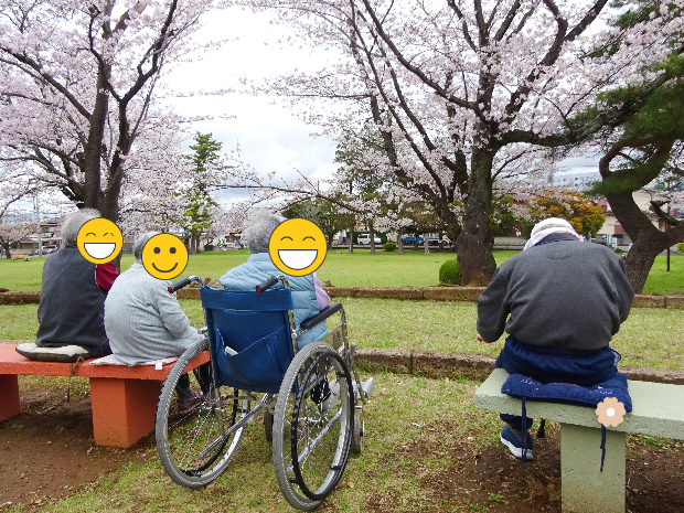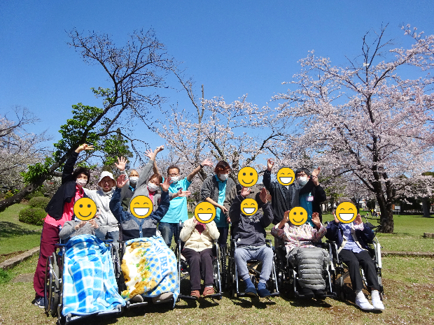 春の良い天気と桜、みんなで和やかな時間を楽しみました。