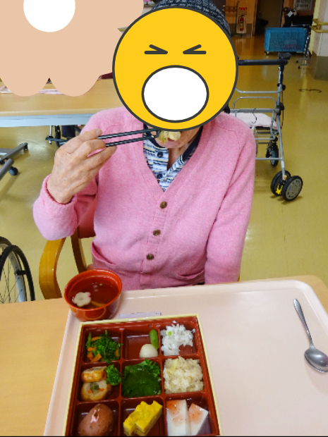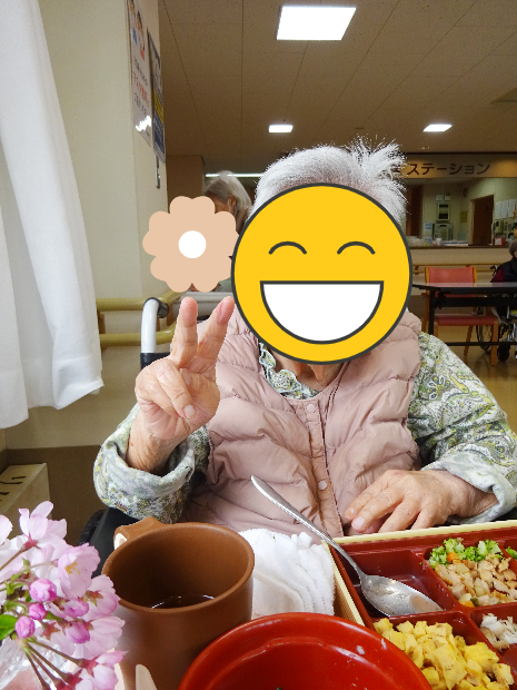 春の食材をたくさん使ったお花見弁当に皆さん大満足!! いつもより箸の進むスピードが速い気もします(・´з`・)食欲は元気の源! たくさん召し上がってください。
