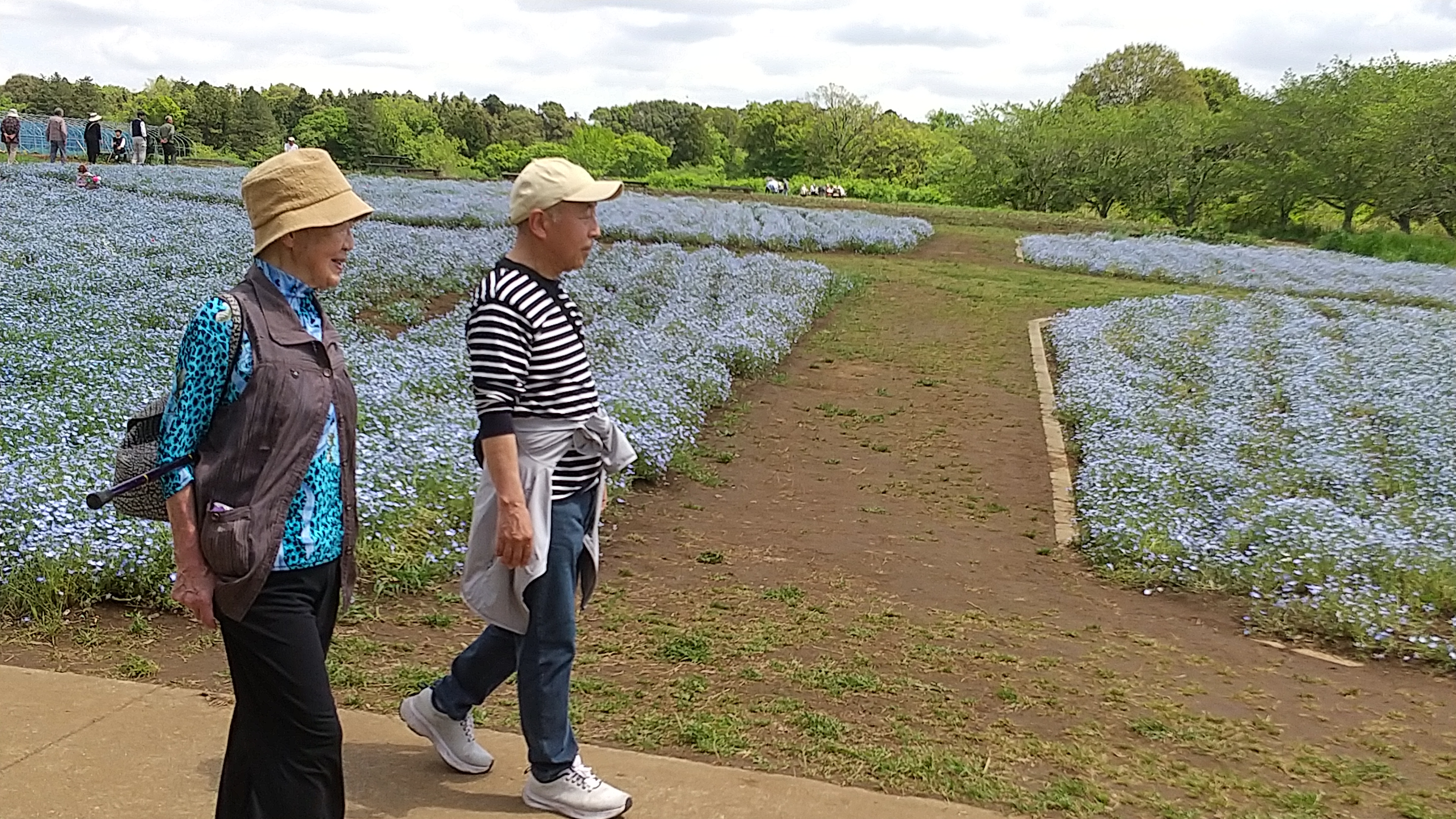 ネモフィラの美しい青い風景を背景にパシャリ。