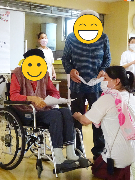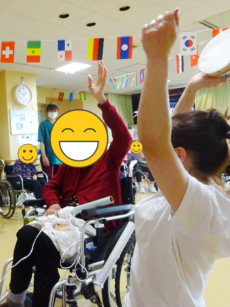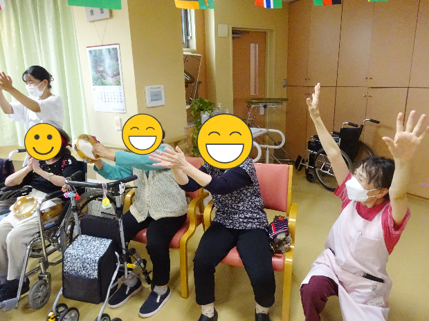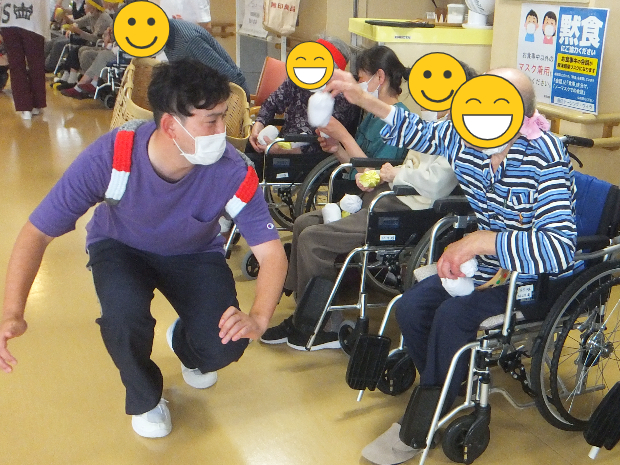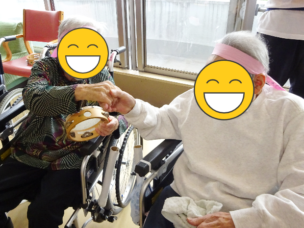 周りで観戦しているご入所者様たちは、手にタンバリンや鈴をもって応援!!さてさて、この頂上対決、どちらが勝ったのでしょうか。