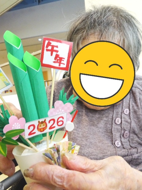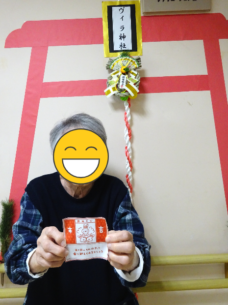 新着情報 NEWS 2026年 ヴィラお正月| 介護老人保健施設 辰巳ナーシング・ヴィラ 2026.01.01 新年明けましておめでとうございます ! 初日の出を拝み、2026年のスタートです (^^)/ すると... 今年も「ヴィラ神社」がお出ましになりました ! 鈴緒(すずお)を振り、思い思いに願いを込めます ... ☆ 鈴はついていませんが、神社の鈴の音は参拝者の邪気を祓い 神様を呼び寄せて心を和ませる意味があるそうですよ (*'▽') 手を合わせ真剣に願います ... 神社 ! 初詣 ! といえば、おみくじですね ! どきどきです ... ♡ 結果はどうでしょう ... ? (; ・`д・´) こちらは「末吉」でした ! 末吉は「将来、運気が上がっていく ( 吉に向かう ) 」という 末広がりの成長や希望を示す運勢です ☆ これから楽しいことが巡ってくることでしょう (*´艸`*) お次は「絵馬」に願い事や抱負を書いていきます ( ..)φ_ 皆さんしっかりと筆ペンを握り、力強く書いていますね ! 皆さんの願いを叶えるべく、スタッフ一同全力でサポートさせていただきます (*^^)v 又、お正月飾りのミニ門松も作りました ♪ 生け花のように土台に挿し、接着もしていきます ! 全体のバランスも見ながら、皆さん集中して作っていました ☆ 素敵なミニ門松の完成です ! これで年神様も迷うことなく来ていただけそうですね (^^) お食事は豪華な「おせち料理」です ☆ 海老、数の子、黒豆、なますのいくら乗せ、昆布巻き ... 豪華ラインナップです (*'▽') ♡ ⇩ こちらは朝食メニュー ⇩ こちらは昼食メニュー 大晦日には延命・長寿を願い、年越しそばと天ぷらも提供されました (^^) 1つ1つの味を楽しみながら、皆さんあっという間に食べてしまいました ♪ 「美味しいわね」と笑顔もお腹もいっぱいです♡ 2026年も笑顔いっぱいの1年となりますよう、スタッフ一同励んでまいります ! 今年もどうぞよろしくお願い致します。 一覧に戻る